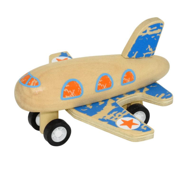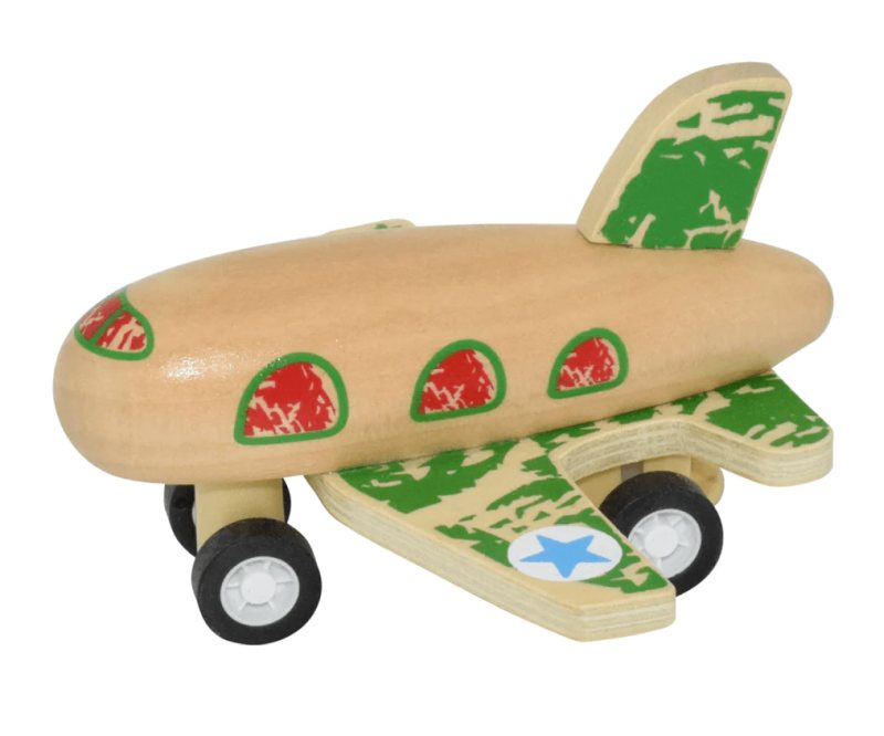 A delightful wooden clockwork creation that comes to life with a simple pull-back-and-release mechanism. These 3 little wooden planes have a smooth, sleek design and bright colourful designs.