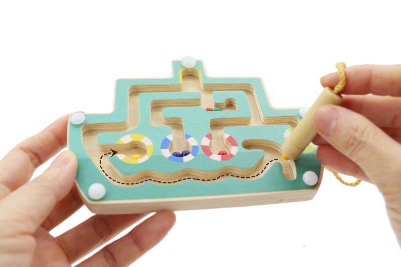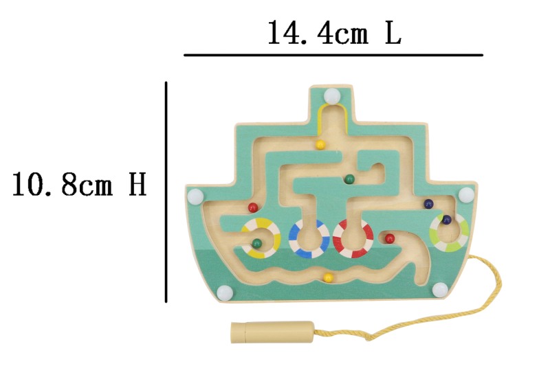 Embark on a captivating voyage with our Ship Magnetic Labyrinth. This wooden labyrinth incorporates channels beneath a perspex sheet for magnetic balls. By using the pen that comes with an embedded magnet, you can guide the balls along the complex routes and towards their designated spots within the color-coded life preservers.