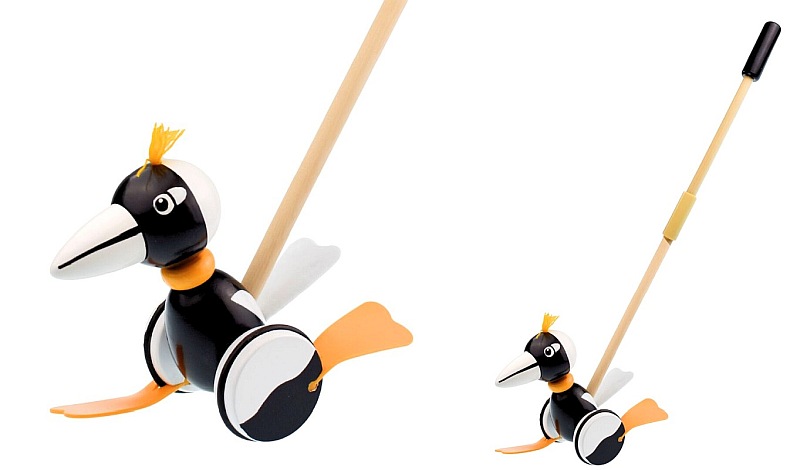 Made from FSC-certified wood, the Push Along Magpie features a sturdy handle that screws together for easy storage and a comfortable grip for small hands. As children push the magpie, its feet tap and flop, creating engaging movement that sparks laughter and imaginative play. Perfect for toddlers beginning to steady their steps, this toy supports gross motor skill development while celebrating a much-loved Aussie bird.