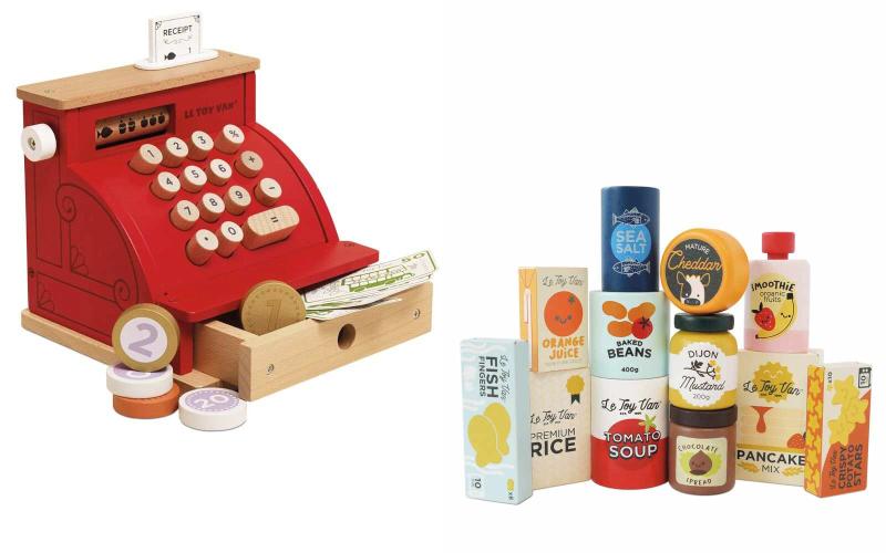 Made from sustainably sourced wood and finished with non-toxic paints, both sets are designed for regular use. This type of role play supports early numeracy, counting and simple money handling, while also encouraging communication and social interaction. The grocery items also pair well with other play food sets for extended pretend shopping play. The pieces are sized for small hands and suitable for ages 3 years and over.