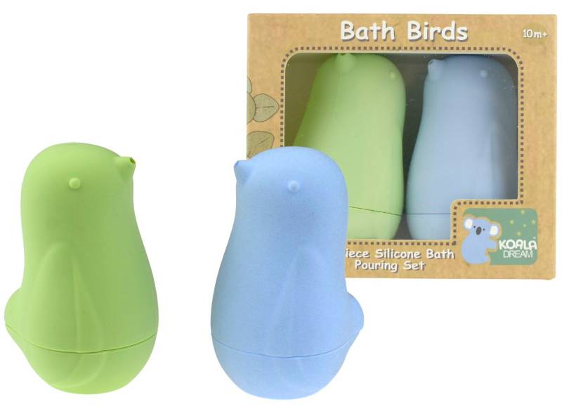 Set of two bird-themed silicone toys in muted green and blue hues, designed to add a splash of fun to your little one's playtime! Crafted from 100% food-grade silicone, these toys are not only safe for your child but also BPA-free, ensuring a worry-free experience. The open-ended play possibilities are endless as these charming bird toys can be filled with water and enjoyed in various ways. Squeeze, pour, and squirt through their beaks for a water play adventure that will captivate your child's imagination.