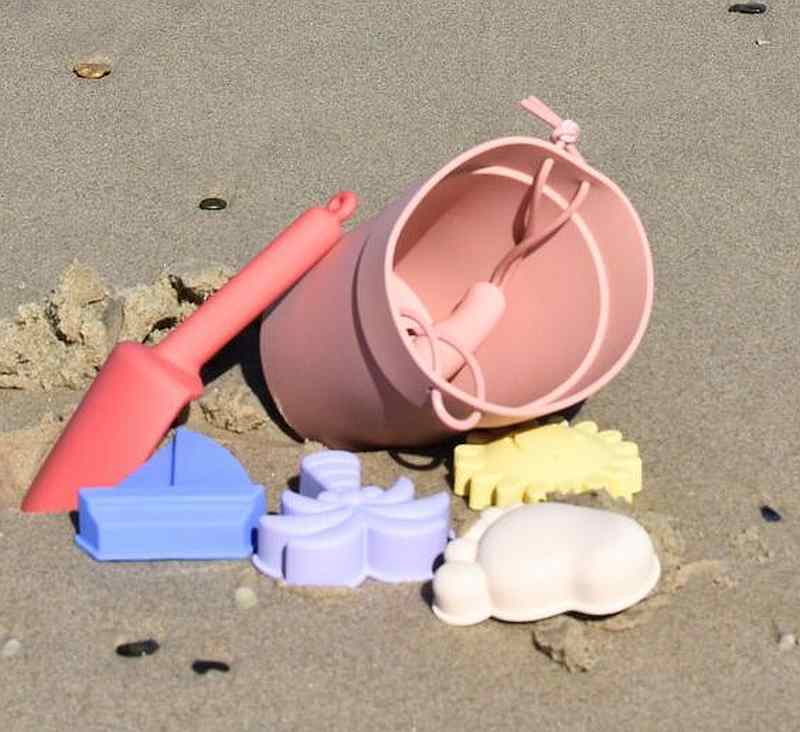 Embark on vibrant beach escapades with our Silicone Beach Bucket Set in enchanting Reds! This set, featuring a bucket, spade, and four pretty sand moulds shaped like the sun, palm tree, footprint, and boat, is a kaleidoscope of seaside delight.