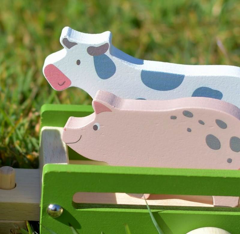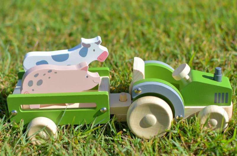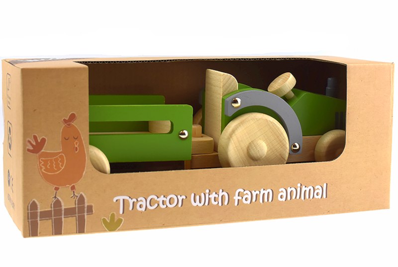 This wonderful little tractor also comes with 2 wooden animals a pig and cow that fit perfectly into the trailer. This is a very attractive little tractor with child-safe paint and grey mud guards. This wooden toy tractor and trailer meets or exceeds all Australian safety ratings and is made from high quality wood which will last all the rough jobs it will do on the farm.